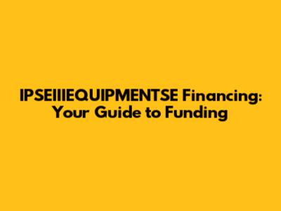 IPSEIIIEQUIPMENTSE Financing: Your Guide To Funding