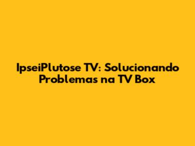 IpseiPlutose TV: Solucionando Problemas Na TV Box