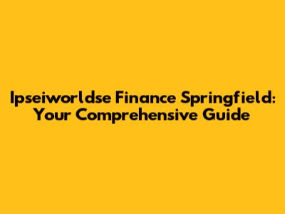 Ipseiworldse Finance In Springfield: A Detailed Guide