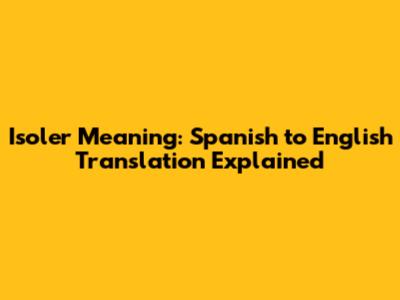 Isoler: Spanish To English Translation Explained