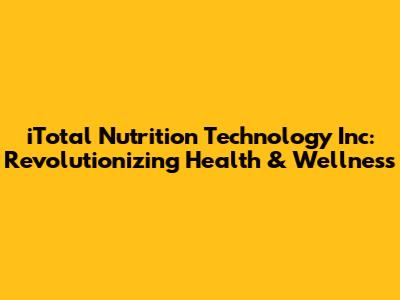 Hey guys! Let's dive into the world of iTotal Nutrition Technology Inc., a company that's making waves in the health and wellness industry. In this article, we'll explore what makes iTotal Nutrition Technology Inc. stand out, their innovative approach to nutrition, and how they're impacting the lives of people seeking a healthier lifestyle. So, buckle up and let's get started!