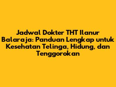 Jadwal dokter THT Ilanur Balaraja adalah informasi krusial bagi kalian yang membutuhkan penanganan medis terkait masalah Telinga, Hidung, dan Tenggorokan (THT). Memahami jadwal praktik dokter THT di Ilanur Balaraja akan mempermudah kalian dalam membuat janji temu, mempersiapkan diri, dan mendapatkan penanganan yang tepat waktu. Artikel ini akan membahas secara mendalam mengenai jadwal dokter THT di Ilanur Balaraja, tips memilih dokter, serta informasi penting lainnya yang perlu kalian ketahui. Jadi, simak terus, ya, guys!