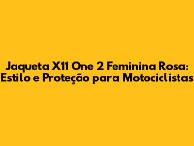 Hey, ladies! Se você está procurando uma jaqueta de moto que combine estilo, conforto e segurança, a Jaqueta X11 One 2 Feminina Rosa pode ser a escolha perfeita para você. Vamos explorar todos os detalhes que fazem desta jaqueta uma peça essencial para suas aventuras sobre duas rodas.