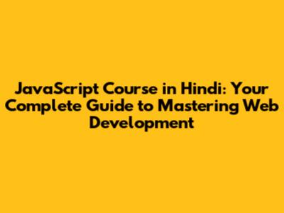 JavaScript Course In Hindi: Your Complete Guide