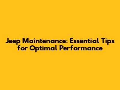 Jeep Maintenance: Essential Tips For Optimal Performance