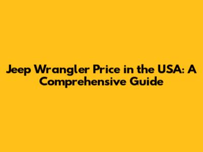 Jeep Wrangler Price In The USA: A Comprehensive Guide