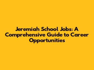 Jeremiah School: Unlocking Career Paths And Opportunities