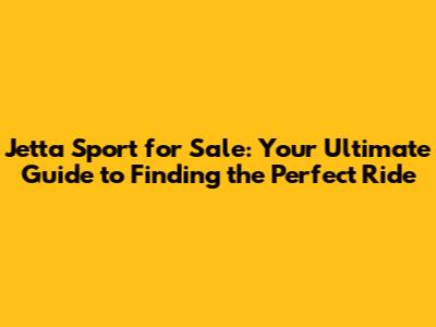 Jetta Sport For Sale: Your Guide To Finding The Perfect Ride