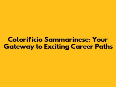 Join Colorificio Sammarinese: Jobs & Career Opportunities