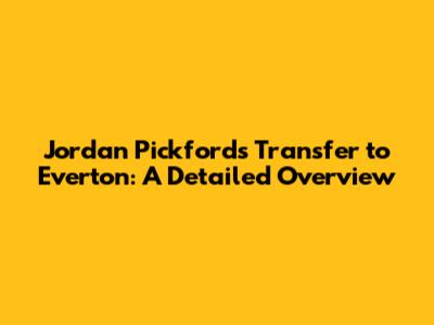 Jordan Pickford's Transfer To Everton: A Detailed Overview