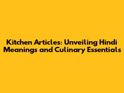 Kitchen Articles: Unveiling Hindi Meanings And Culinary Essentials