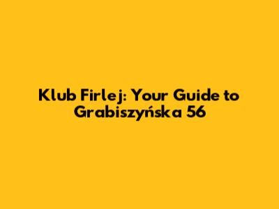 Klub Firlej: Your Guide To Grabiszyńska 56