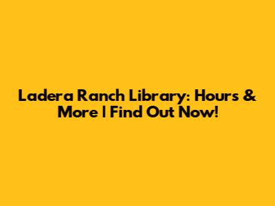 Ladera Ranch Library: Hours & More | Find Out Now!