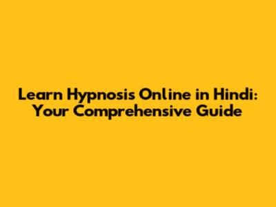 Learn Hypnosis Online In Hindi: Your Comprehensive Guide