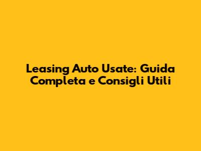 Leasing Auto Usate: Guida Completa E Consigli Utili