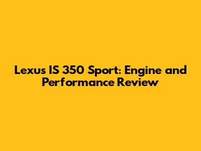 Lexus IS 350 Sport: Engine And Performance Review