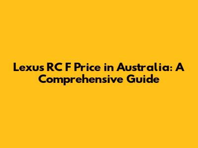 Lexus RC F Price In Australia: A Comprehensive Guide