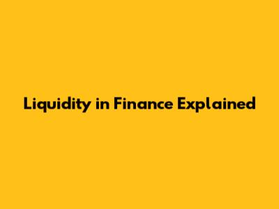 Liquidity In Finance Explained