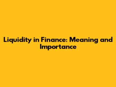Liquidity In Finance: Meaning And Importance