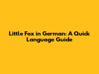 Little Fox In German: A Quick Language Guide