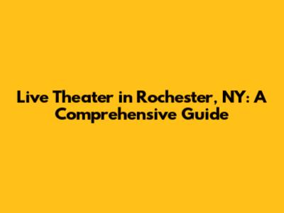Live Theater In Rochester, NY: A Comprehensive Guide