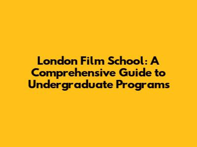 London Film School: Undergraduate Program Guide