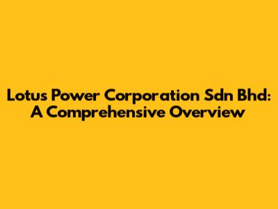 Lotus Power Corporation Sdn Bhd: A Comprehensive Overview