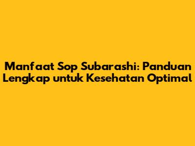 Manfaat Sop Subarashi: Panduan Lengkap Untuk Kesehatan Optimal