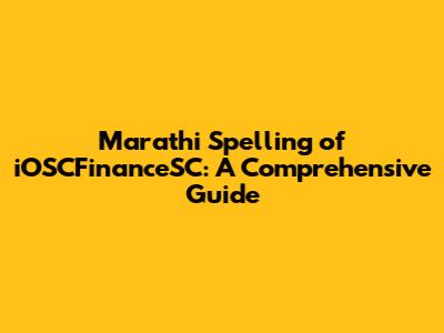 Marathi Spelling Of IOSCFinanceSC: A Comprehensive Guide
