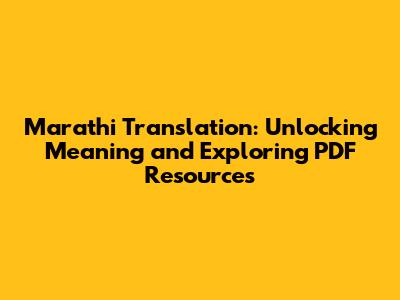 Marathi Translation: Meaning And PDF Resources