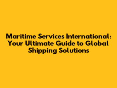 Maritime Services International: Your Comprehensive Guide