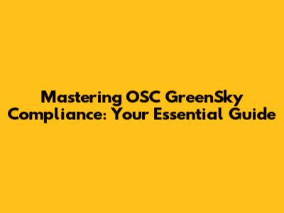 Mastering OSC GreenSky Compliance: Your Essential Guide