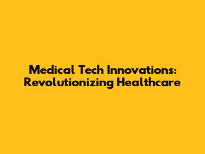 Medical Tech Innovations: Revolutionizing Healthcare