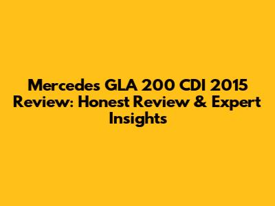 Mercedes GLA 200 CDI 2015: Honest Review & Expert Insights