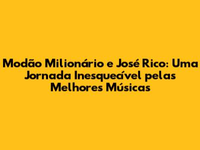 Modão Milionário E José Rico: As Melhores Músicas
