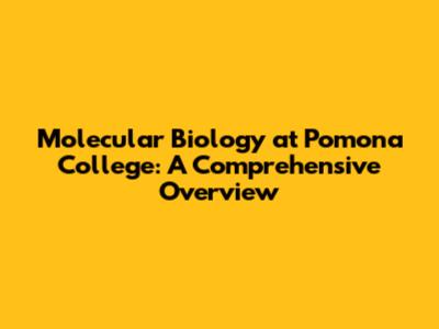 Molecular Biology At Pomona College: A Comprehensive Overview