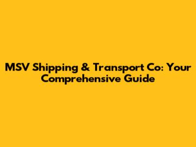 MSV Shipping & Transport Co: Your Comprehensive Guide