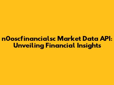 N0oscfinancialsc Market Data API: Your Gateway To Financial Insights