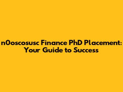 N0oscosusc Finance PhD Placement: Your Guide To Success