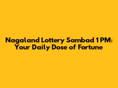 Hey there, lottery enthusiasts! Are you ready to dive into the exciting world of the Nagaland Lottery Sambad? Specifically, we're talking about the 1 PM draw, and believe me, it's a daily ritual for many, filled with anticipation and dreams of striking it rich. In this article, we'll break down everything you need to know about the Nagaland Lottery Sambad 1 PM draw, from how to check your results to understanding the prize structure and some handy tips that might just boost your chances. So, buckle up, guys, because we're about to embark on a journey through numbers, luck, and the thrill of the draw!