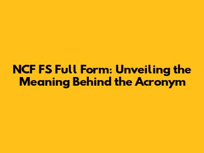 NCF FS Full Form: Unveiling The Meaning Behind The Acronym