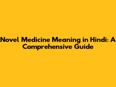 Novel Medicine Meaning In Hindi: A Comprehensive Guide
