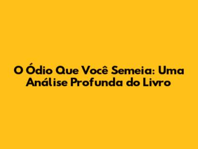 O Ódio Que Você Semeia: Uma Análise Profunda Do Livro