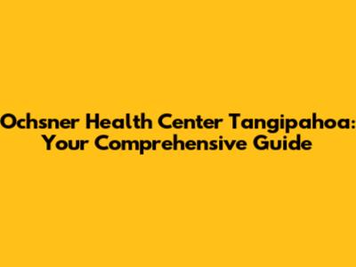 Ochsner Health Center Tangipahoa: Your Go-To Guide