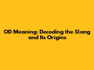 OD Meaning: Decoding The Slang And Its Origins