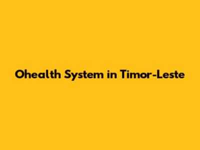 Ohealth System In Timor-Leste