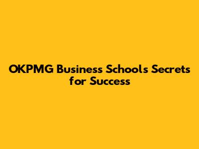 OKPMG Business School's Secrets For Success