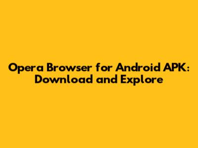 Opera Browser for Android APK is the Android Package Kit version of the popular Opera browser, designed specifically for Android devices. Opera has been a long-standing player in the browser arena, known for its innovation and user-friendly features. The APK version allows users to install the browser directly, which can be particularly useful if you're facing issues with the Google Play Store or if you want to access a specific version of the browser.