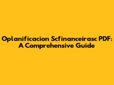 Oplanificacion Scfinanceirasc PDF: A Comprehensive Guide