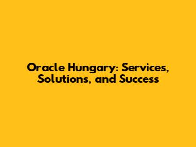Oracle Hungary: Services, Solutions, And Success